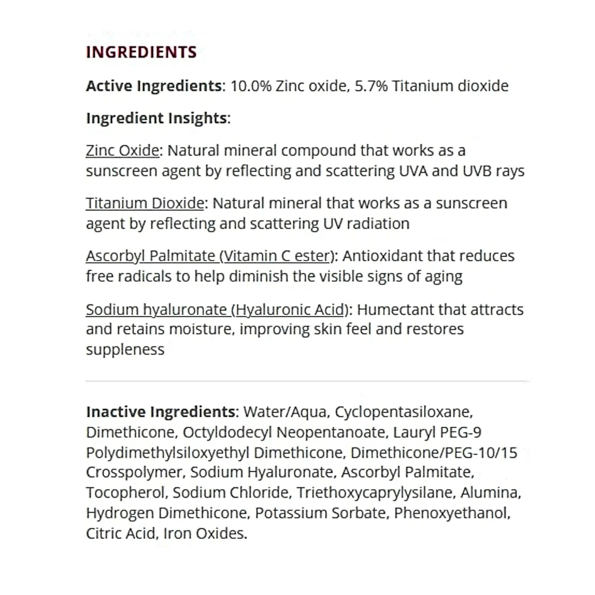 Natural Tint: Blends seamlessly to even out skin tone, giving a radiant, healthy look without a white cast.