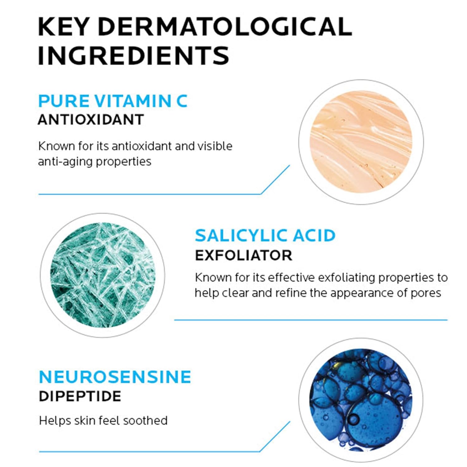 Introducing the La Roche-Posay 10% Pure Vitamin C Serum, a potent anti-aging treatment formulated to enhance skin radiance, reduce wrinkles, and refine texture. This serum combines 10% pure vitamin C (ascorbic acid) with salicylic acid and neurosensine, ensuring optimal effectiveness while remaining suitable for sensitive skin.Â